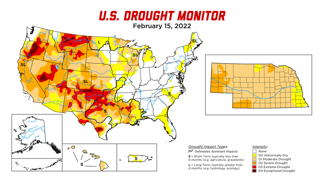 With spring planting season on the horizon, Fuchs said many producers and resource managers are likely making decisions based on current drought conditions. They may switch the type of crops planted or prepare for a heavy irrigation season, as soil moisture declines.