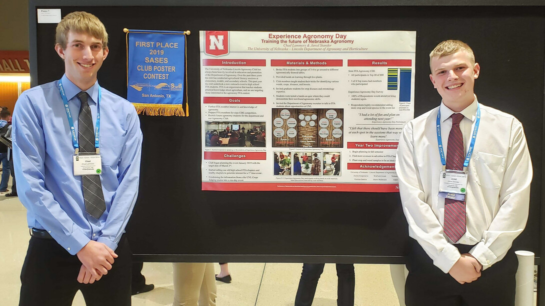 Agronomy and horticulture students received top honors at the American Society of Agronomy, Crop Science Society of America and Soil Science Society of America International Meeting in San Antonio, Texas. They include Alyssa Kuhn, Samuel Koeshall, Chad Lammers, Osler Ortez, Alex Tonon Rosa, Luana Machado Simão and Jared Stander.