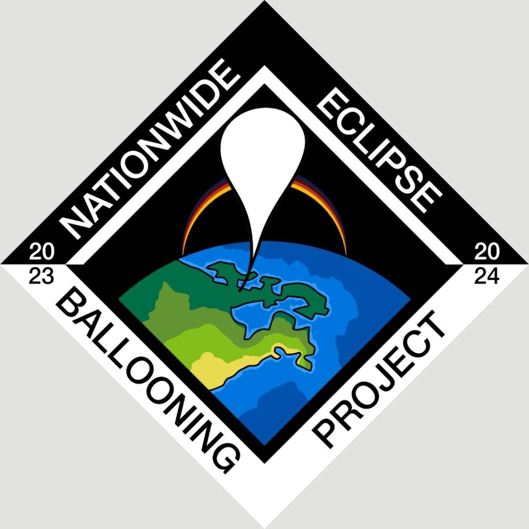 Cade’s design is a diamond-shaped logo depicting a white HAB lifting off from the earth against a backdrop of the halo of a sun partially obscured by the moon passing in front of it.