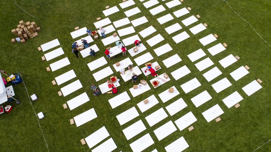 Students, faculty, staff and members of the public can participate in the Husker Flag fundraiser by assisting with the build or by donating funds. Volunteers can also assist with removal of the Husker Flag starting at noon, Sept. 2.