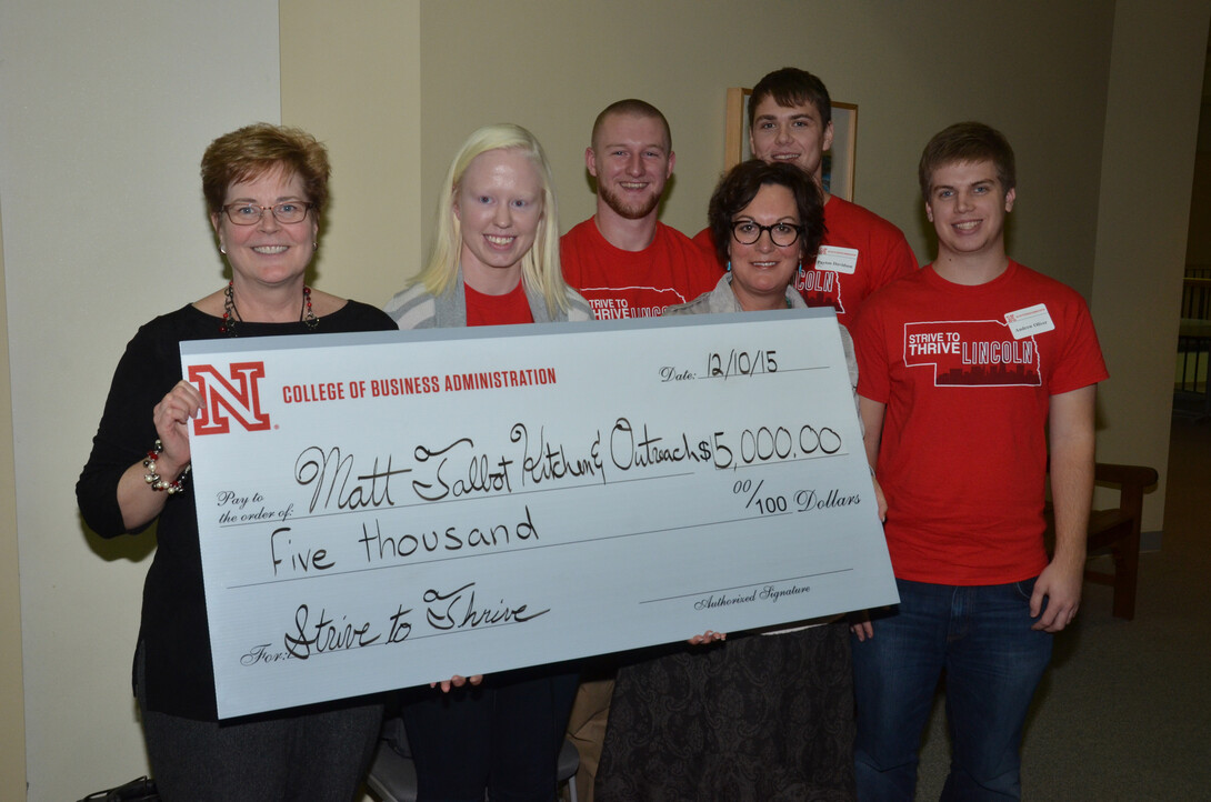 Strive to Thrive Lincoln has awarded a $5,000 grant to the Matt Talbot Kitchen and Outreach and $2,500 grants to Court Appointed Special Advocates (CASA) and Lincoln Literacy. The grant project is aimed at local nonprofits and initiated by students in the Leading People and Project Management course in the University of Nebraska-Lincoln’s College of Business Administration.